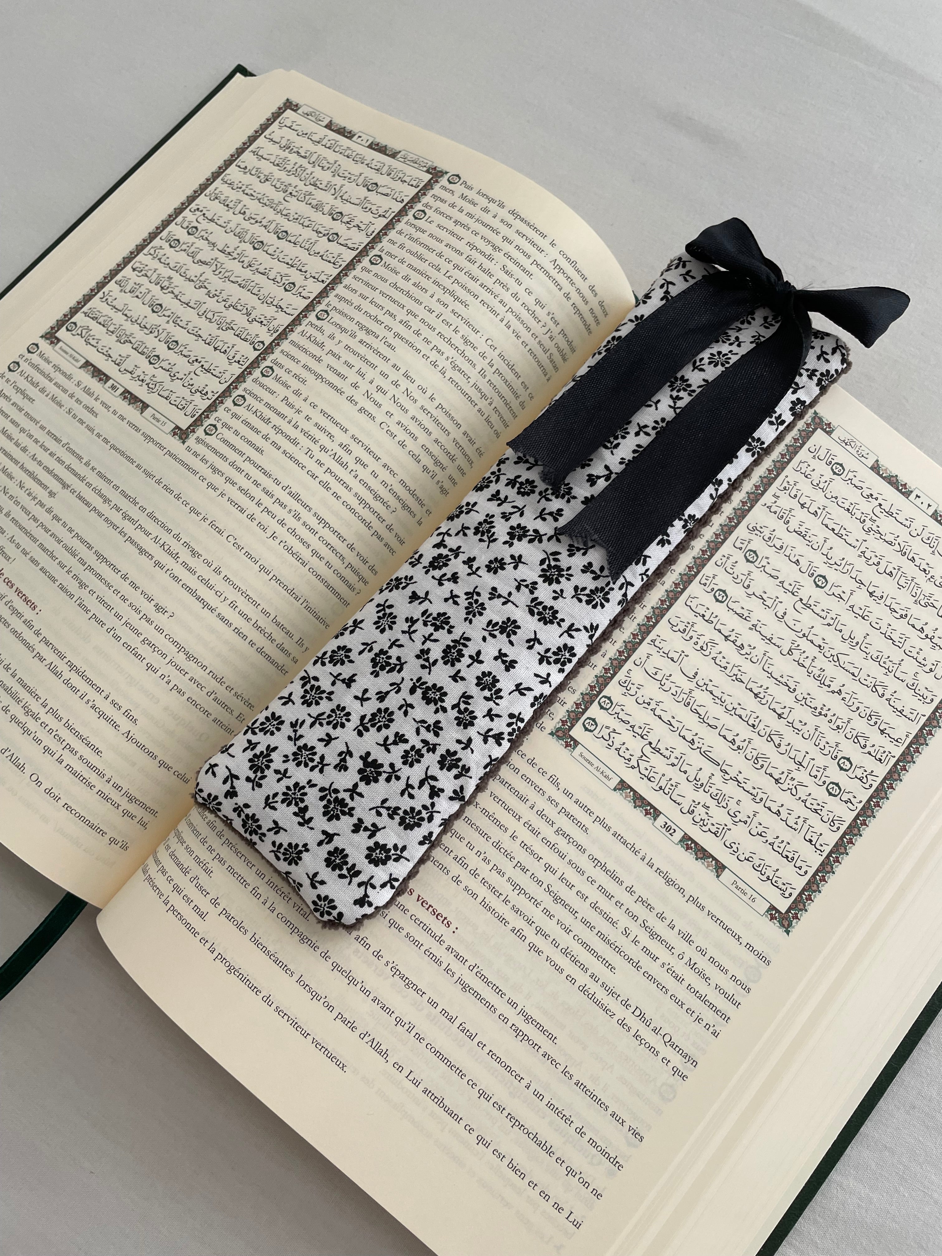 Et pour que ce protège Coran soit le plus utilisé possible, je t’offre les marques pages rubans de ton choix. Ainsi, tu pourras te rappeler de tes pages de lecture, mémorisation, méditation et sourarates spéciales que tu aimes relire souvent (Al-Kahf, Al-Mulk…). Laisses-moi une note dans ton panier afin que je puisse intégrer les marques pages directement dans la couture de ton protège Coran (uniquement sur les articles non déjà cousus).